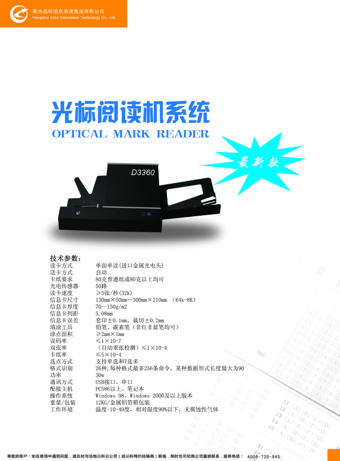 焦作市品科答題卡閱卷機(jī)D3360-D售后維修