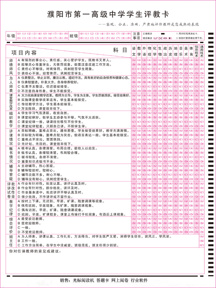 產(chǎn)品標(biāo)題:學(xué)生評教卡