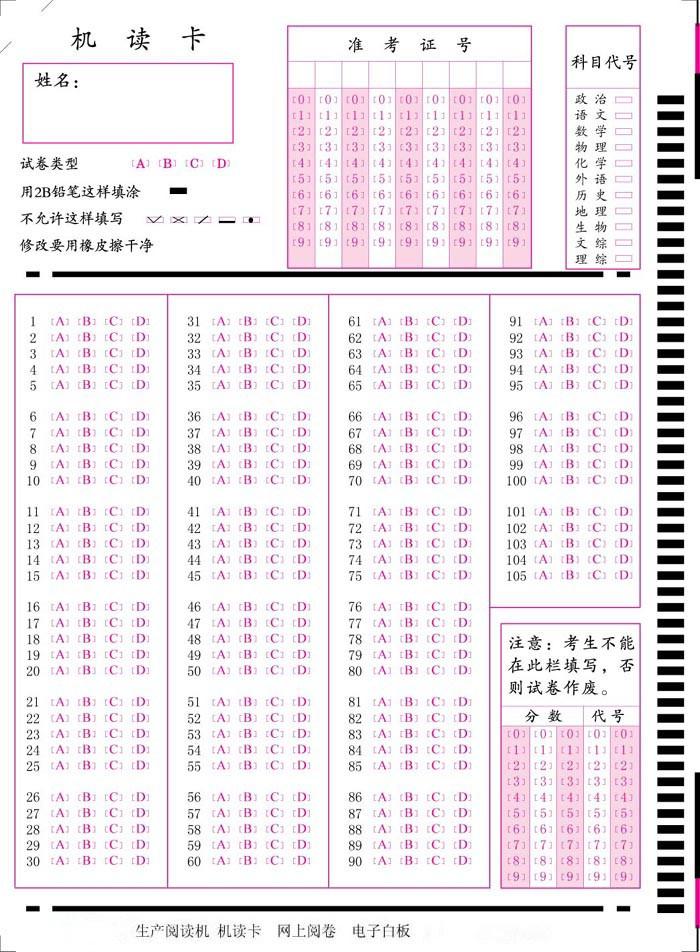 機讀卡答題卡