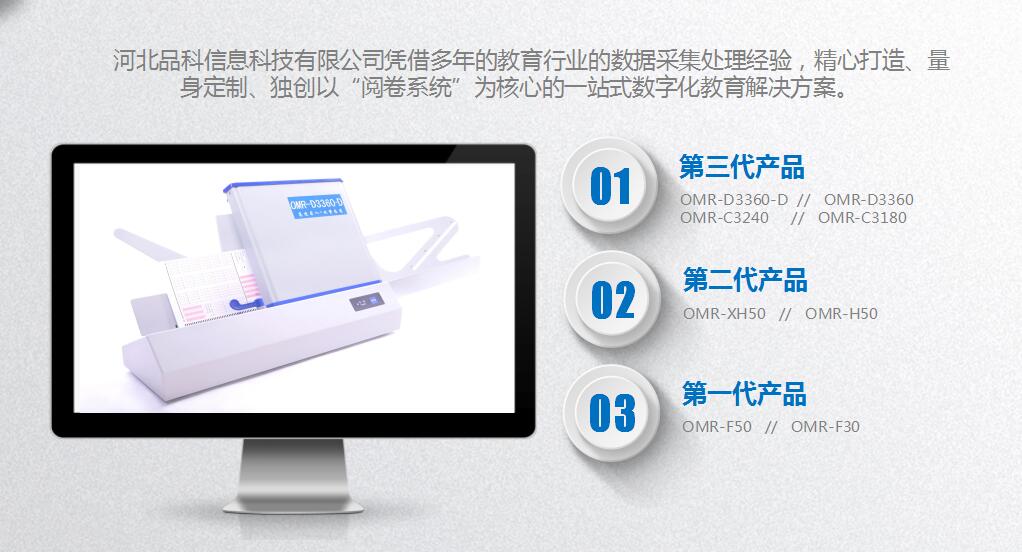 品科是一家極富創新的教育科技產品公司。作為全國第 1大光標閱讀機廠商,品科科為全國用戶提供高考網上閱卷系統、多功能光標閱讀機、外包型閱卷服務以及包括答題卡、智能軟件定制服務。