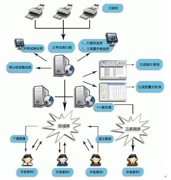 系統(tǒng)對每個知識點,每道小題,每個題組進行詳細的統(tǒng)計分析,為教師提供精確的教學(xué)診斷,進而進行針對性教學(xué),提高教學(xué)質(zhì)量。學(xué)生經(jīng)常應(yīng)用網(wǎng)上閱卷系統(tǒng)考試可以避免高考時,因膽怯和不適應(yīng)造成的非智力性失分;教師經(jīng)常進行網(wǎng)上