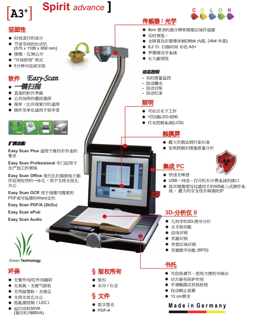 *1、為保證書刊案卷掃描的高速、耐用和使用便利的要求,要求矩陣式CCD點對點一次性彩色掃描方式。要求彩色掃描一次性完成,掃描過程鏡頭、光源不移動、不閃爍。并且要求具備實體證物彩色立體采集功能,要求實體證物采集景深高度≥15cm。操作過程中可任意更多種語言選擇。